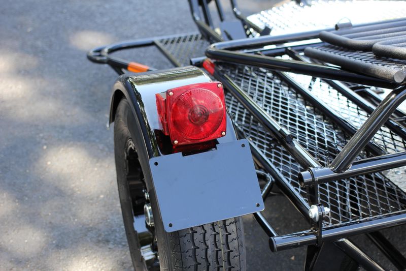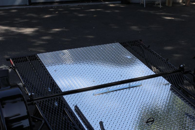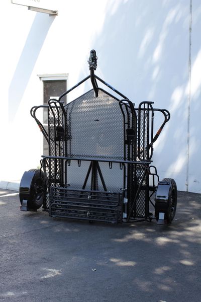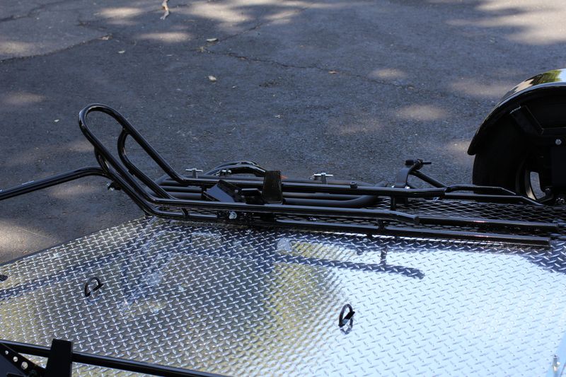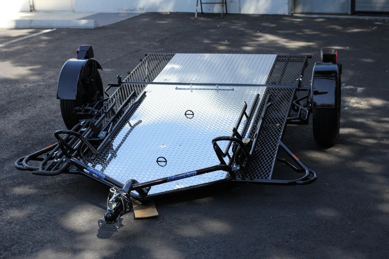The Dual-Ride-up trailer features a wide expanded metal/diamond plate deck area designed to hold up to two full-size bikes such as Harley-Davidsons, GoldWings, K1600s, adventure bikes, etc. The heavy-duty torsion-bar axle and hub combination give the Dual-Rail its full 2,000-lbs. carrying capacity. When carrying only one bike, the independent torsion suspension allows for loading on either side of the trailer. Optional center rail trailer accessories are available for towing a motorcycle in the center of the trailer.