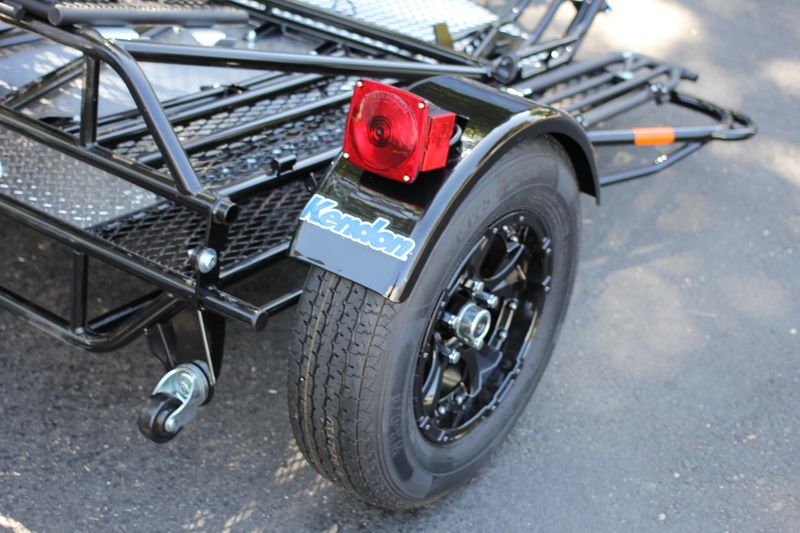 The Kendon Dual-Rail Ride-Up SRL Folding Stand-Up™ Motorcycle Trailer is the flagship of the Kendon line. Designed to perform and built to last, this trailer is the perfect combination of form and function in one excellent, space-saving package.When in use, the Dual-Rail Ride-Up trailer provides ride-on loading capabilities, carrying capacity of up to two full-size motorcycles and Kendon’s renowned towing performance.When in storage, this trailer takes up about the same space as a standard bedroom dresser or chest of drawers.
