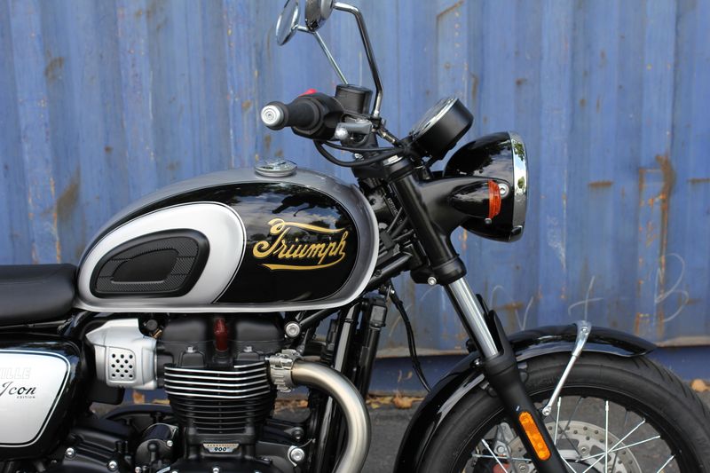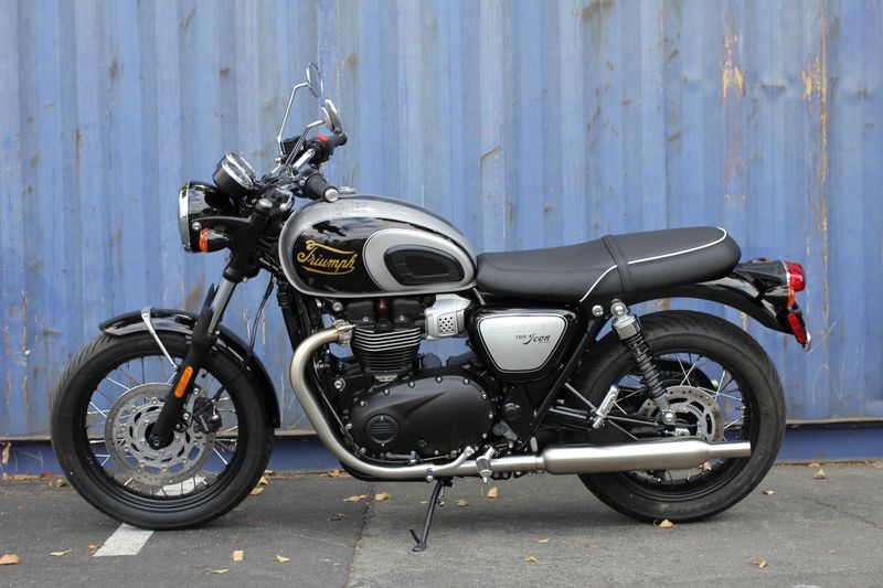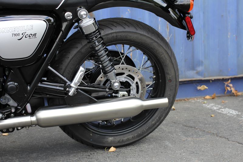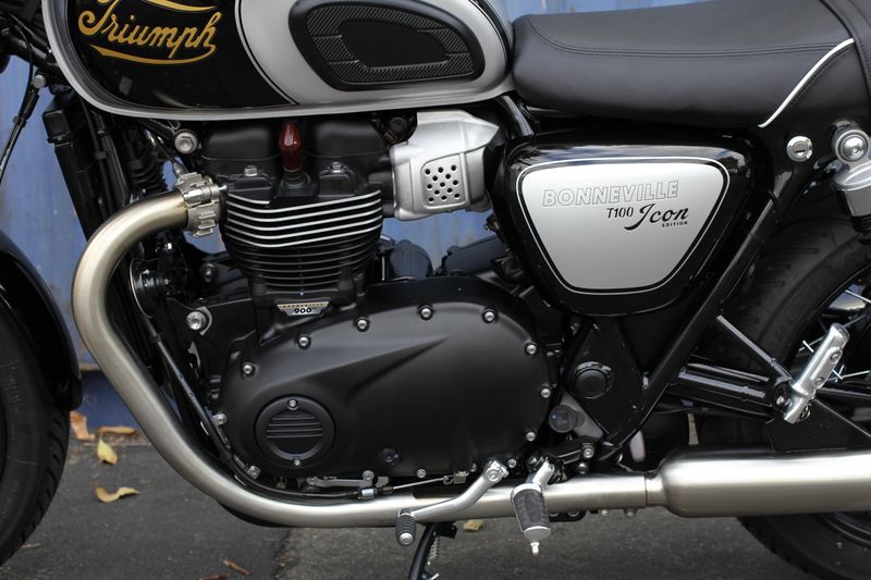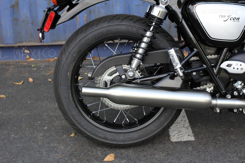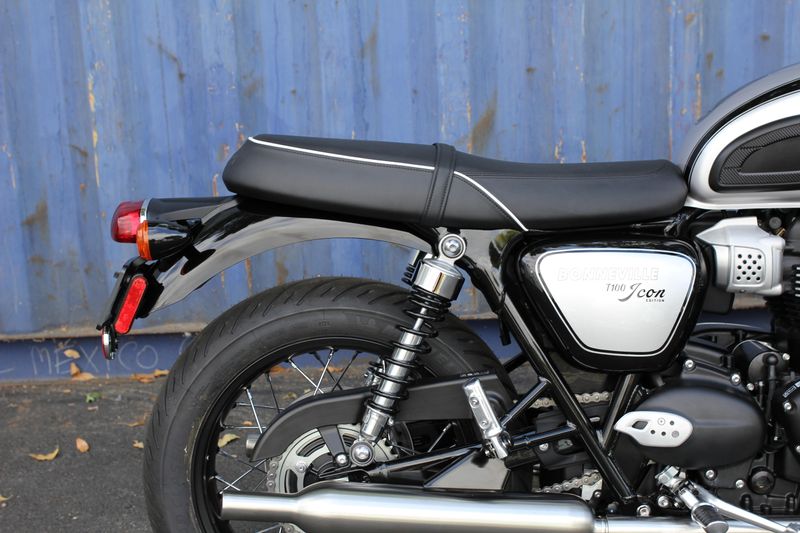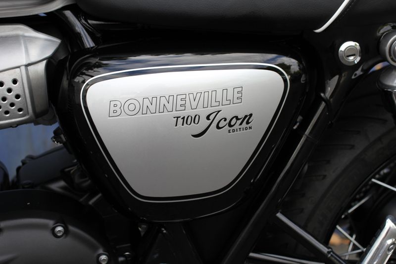 The new Bonneville T100 Icon Edition, presented in a refined Aluminum Silver / Sapphire Black paint scheme, captures the spirit of a British classic with a modern touch. Enjoyed by experienced and new riders alike, the lively but easy-going 900cc motor provides riding excitement accompanied by the trademark Bonneville British twin soundtrack. Modern, confidence-inspiring handling with a comfortable riding position and low 31.1in seat height, plus the versatility to take you beyond your destination, the T100 makes every ride a pleasure, whether it’s injecting fun into the work commute or escaping the everyday on the weekend.