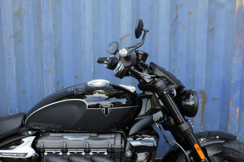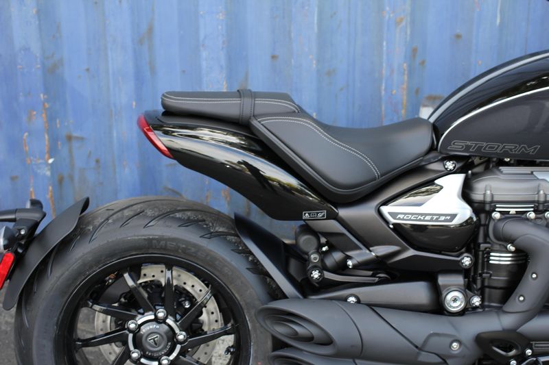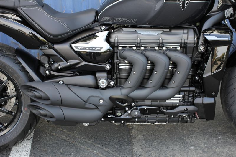 Since its launch in 2004, the legendary Rocket 3 has existed in a class of its own, with a muscular stance and intimidating presence matched to the world’s largest production motorcycle engine. Now with added attitude thanks to a new blacked-out design scheme, more power, and even more torque from its 2,458cc triple, the Rocket 3 Storm takes things to a new record-setting level. With a fully loaded specification built on only the very best components and rider-focused technology to get the best from every ride - together with a wide choice of genuine accessories for personalized perfection - the Rocket 3 Storm is the ultimate muscle roadster.