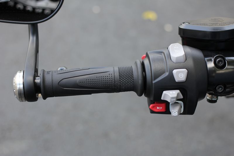 Twin 320mm discs, 4-piston monobloc caliper, Optimised Cornering-ABS (Front Brake)