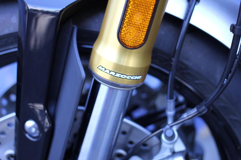 Upside-down Marzocchi fork, Brembo brakes, and sporty ergonomics