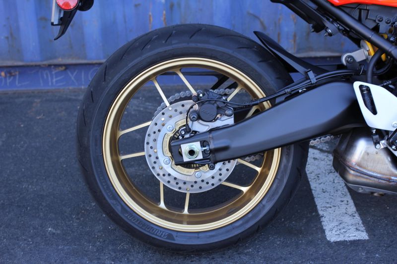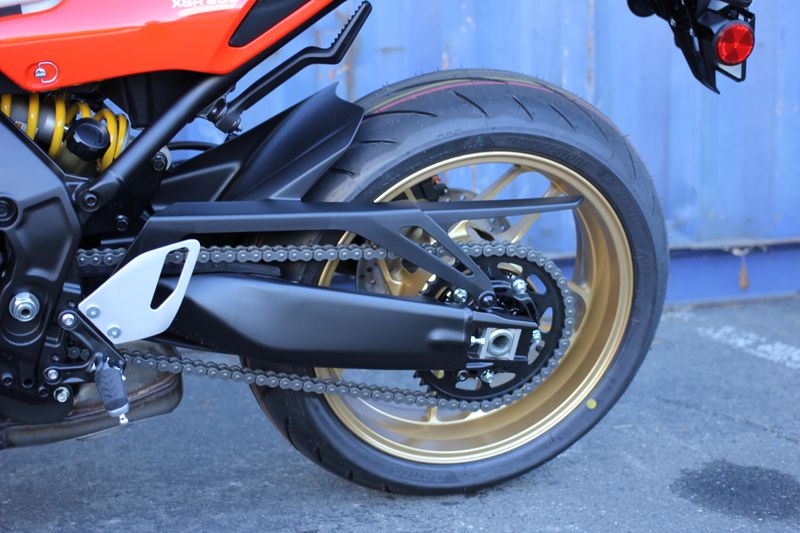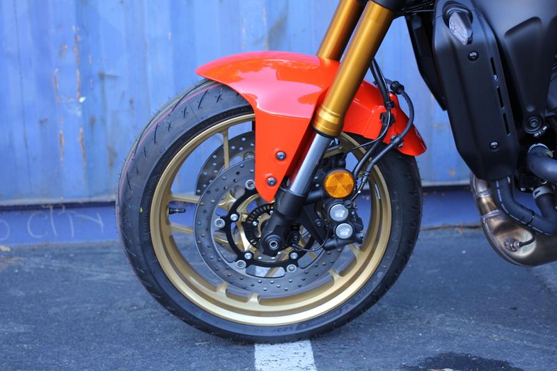 Through Yamaha's exclusive spinforging process, sporty 10-spoke aluminum wheels enhance looks while significantly reducing unsprung weight. The result is improved suspension action and decreased moment of inertia for a more responsive feel, especially during cornering and braking. The 2025 XSR900 also comes equipped with new high performance Bridgestone Battlax Hypersport S23 tires.
