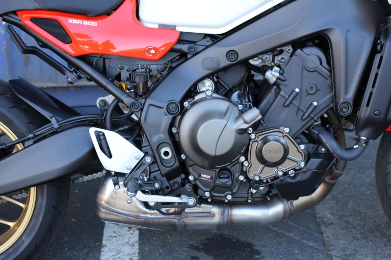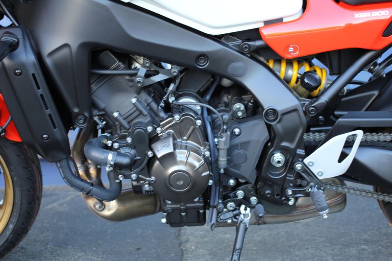 The XSR900's renowned 890cc DOHC crossplane crankshaft three-cylinder engine provides thrilling power and broad, linear torque for outstanding acceleration across the rev range.