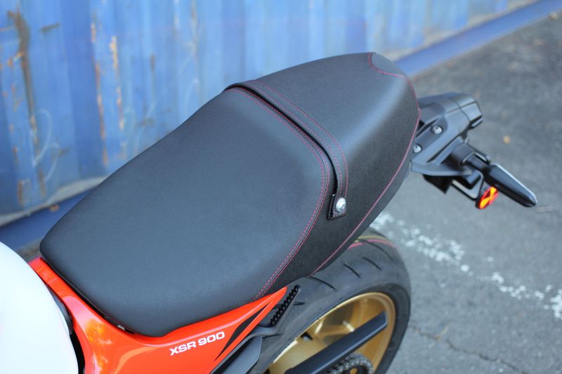 The new 2025 XSR900 features a number of specific ergonomic enhancements including an updated seat design for improved rider and passenger comfort, new handlebar shape, new rubber-mounted footpegs, revised shift lever shape, a new 14-position adjustable clutch lever and new dash-mounted USB-C outlet.