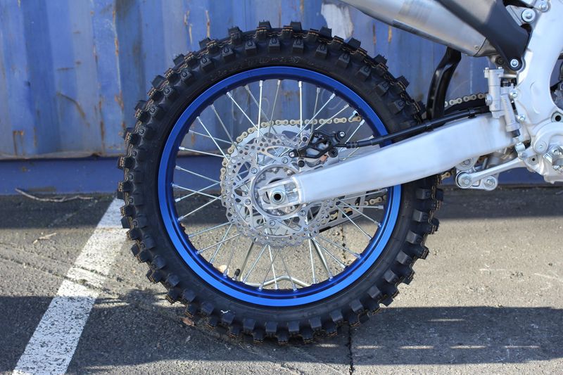 Additional top-spec details include wide foot pegs, quick-adjust clutch perch and gold drive chain with YZ450F-specific chain guide.