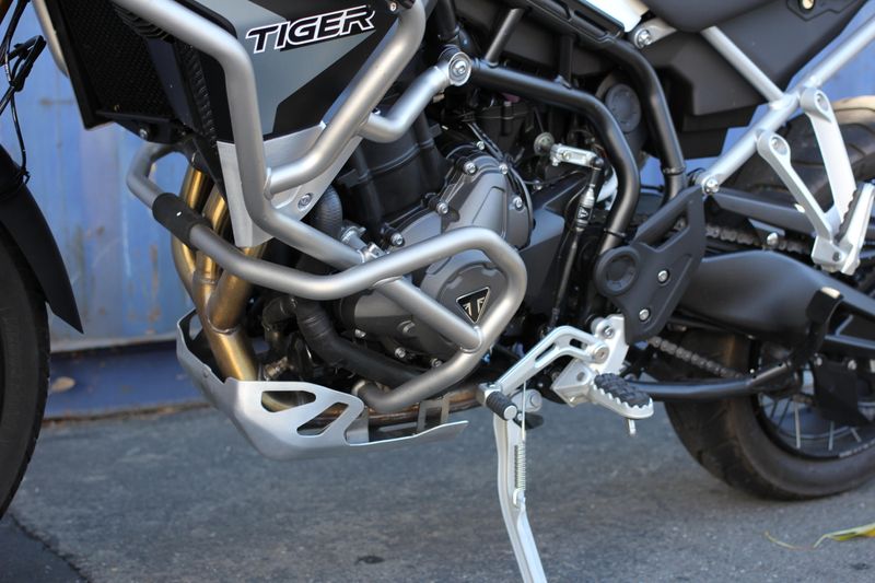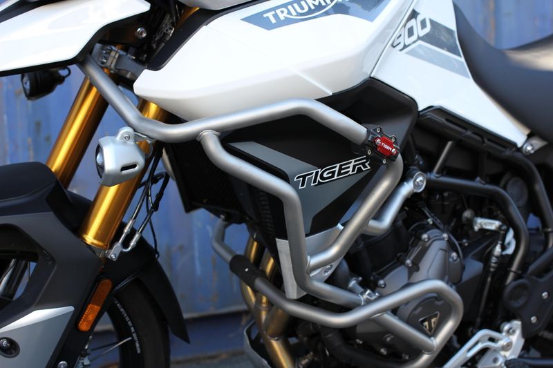 • SOPHISTICATED: The Tiger 900 Bond Edition includes premium ‘blacked out’ detailing throughout. The frame, side headlight shroud, side panels, sump guard, pillion footrest hangers, auxiliary lamp shrouds and engine guards all have a premium, black finish.