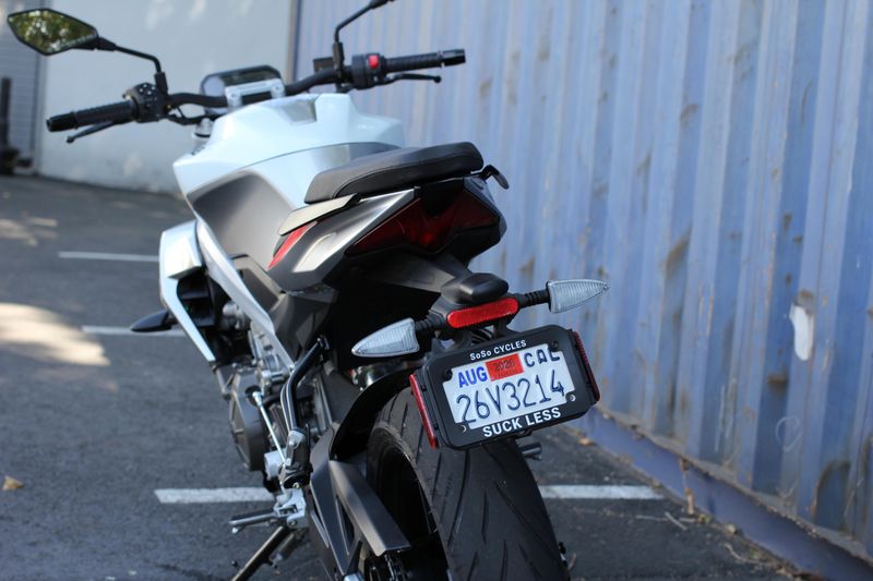The design of the Tuono 457 starts from a blank sheet, with essential lines that blend seamlessly with its compact surfaces: from the full LED front lighting system, featuring a triple headlamp above a small spoiler inspired by the Tuono 1000 R, to the fuel tank, designed for optimal ergonomics when riding in an upright position. The most unconventional and irreverent Tuono ever, it is the only one in the family without a semi-fairing attached to the frame, a choice that makes it even lighter and more agile. A true naked bike that retains the essential values characteristic of all high-handlebar Aprilia sportbikes, it is practical for city riding and raring to take on every curve with absolute precision.