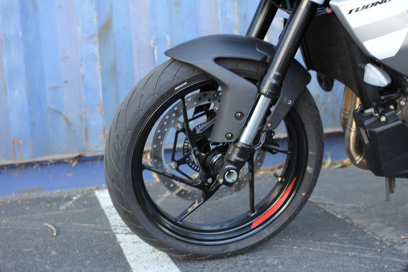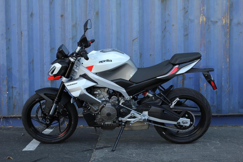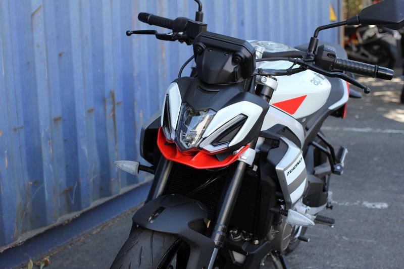 The Tuono 457 is pure adrenaline. The accelerator that unleashes your most authentic emotions via unparallelled energy, rebellious style and technology that is simply the best. The Aprilia Tuono 457 is a true naked bike that maintains all the key characteristics of the Aprilia Tuono, the fun bike to beat all fun bikes. Featuring an improved power-to-weight ratio that allows it to be ridden with an A2 licence, it is designed for a new wave of young motorcyclists just like you: passionate, skilled riders who demand top performance and total fun.